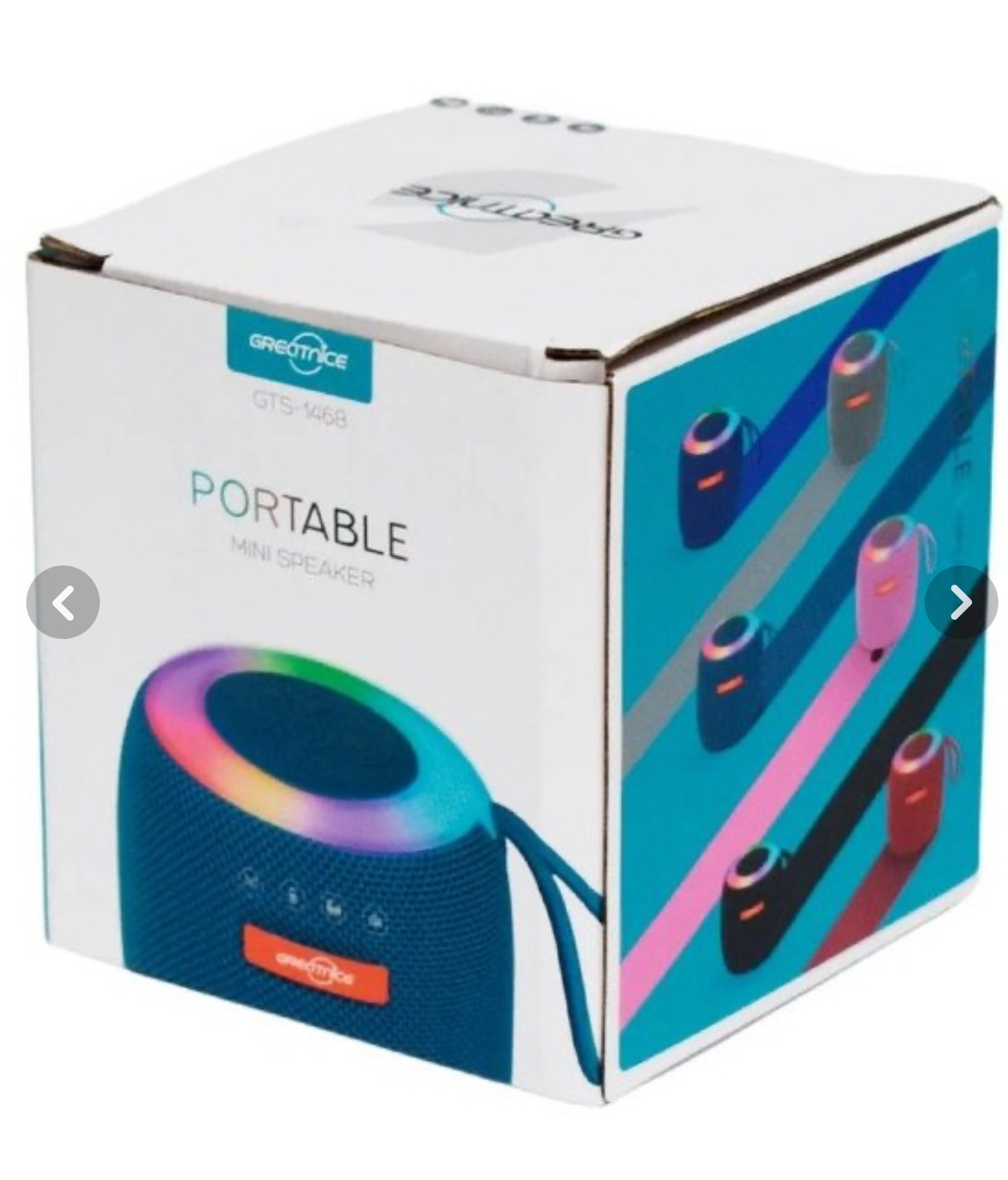 اسپیکر بلوتوثی مدل GTS-1468 با توان ۵ وات، نورپردازی RGB، پشتیبانی از فلش/کارت حافظه، برد بلوتوث ۱۰ متر، درایور ۲ اینچی، پخش موسیقی از فلشهای USB یا کارت حافظه Micro SD تا ظرفیت ۳۲ گیگابایت، ظرفیت باتری ۸۰۰ میلیآمپر، زمان شارژ حدود ۲ تا ۳ ساعت، به همراه کابل شارژ