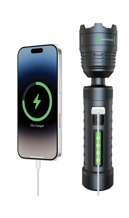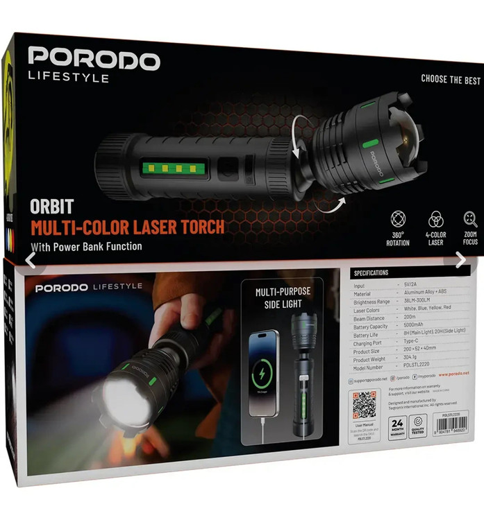 چراغ قوه لیزری چندرنگ Porodo Orbit با پاوربانک ۵۰۰۰mAh و چرخش ۳۶۰