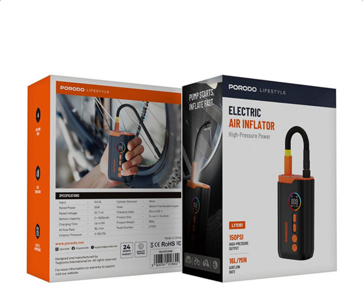 پمپ باد پرودو مدل PORODO LIFESTYLE ELECTRIC AIR INFLATOR PD-LFST181